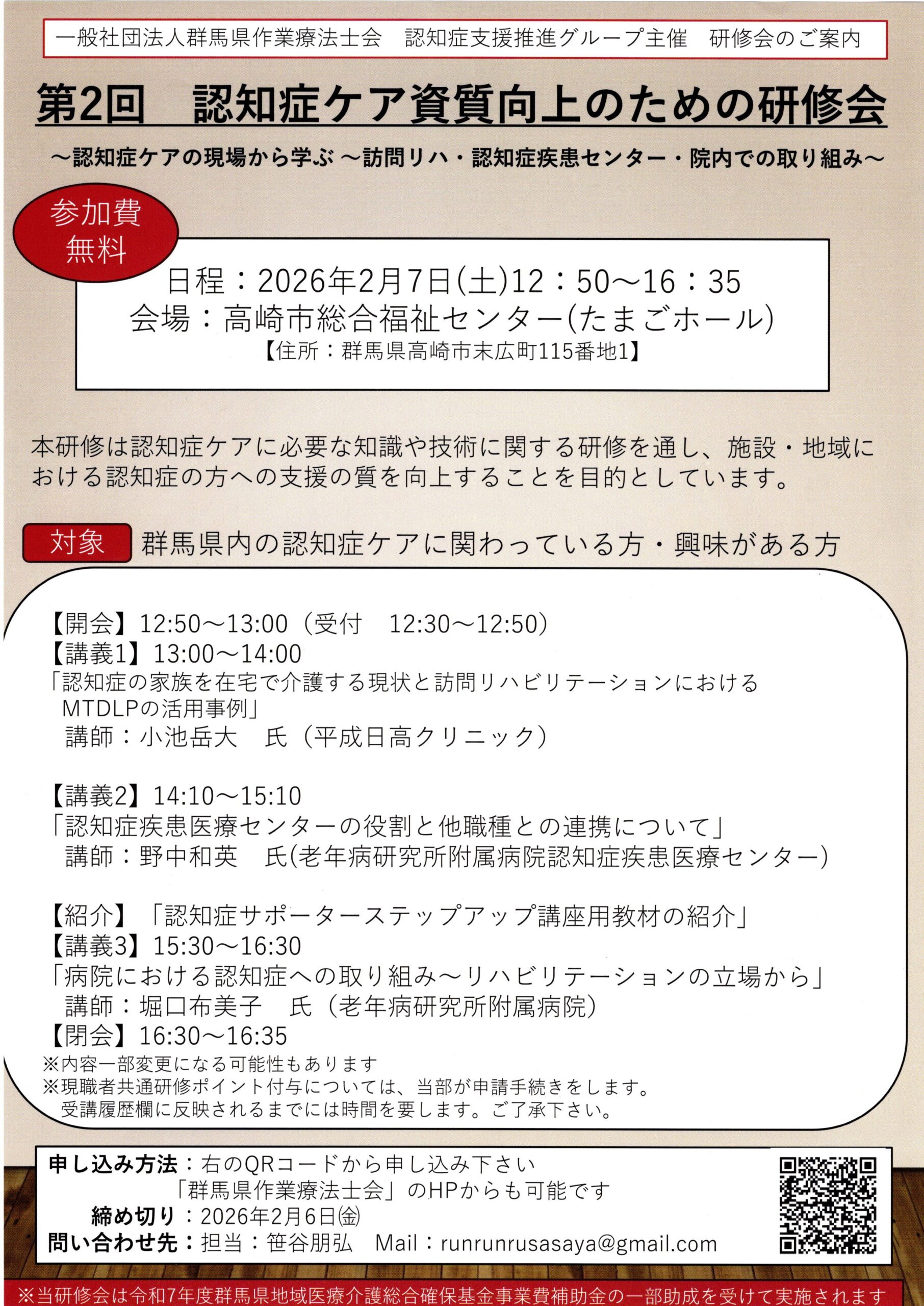 [研 修]2026/2/7(土)第2回認知症ケア資質向上のための研修会