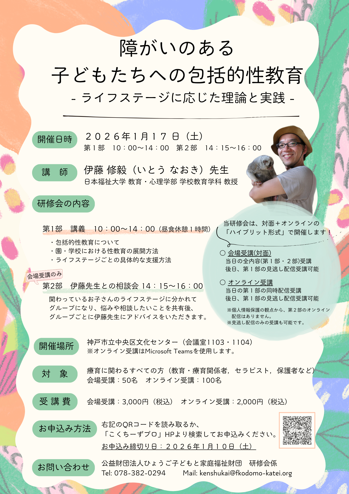 [研 修]2026/1/17(土)障がいのある子どもたちへの包括的性教育